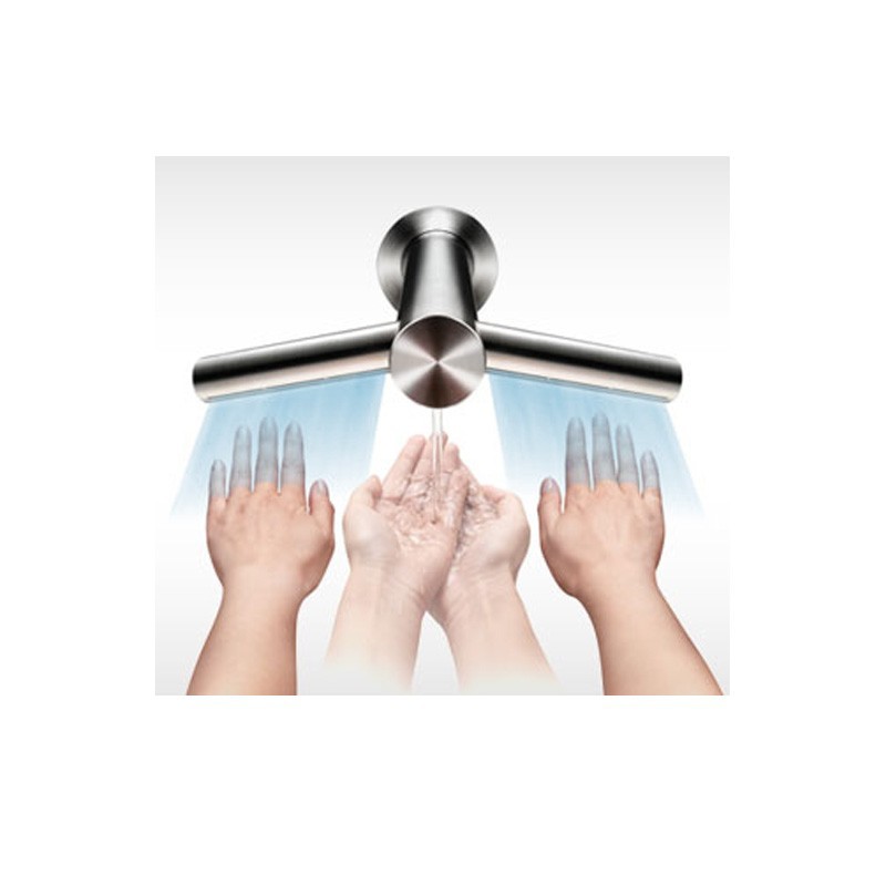 The Dyson Airblade Wash+Dry hand dryer automatically switches between water and air, there's no need to touch dirty taps or buttons. Fast. And energy-friendly. Using Airblade™ technology, sheets of high-velocity air quickly scrape water from hands. Drying hands in just 14 seconds 1 without needing energy-hungry heating.