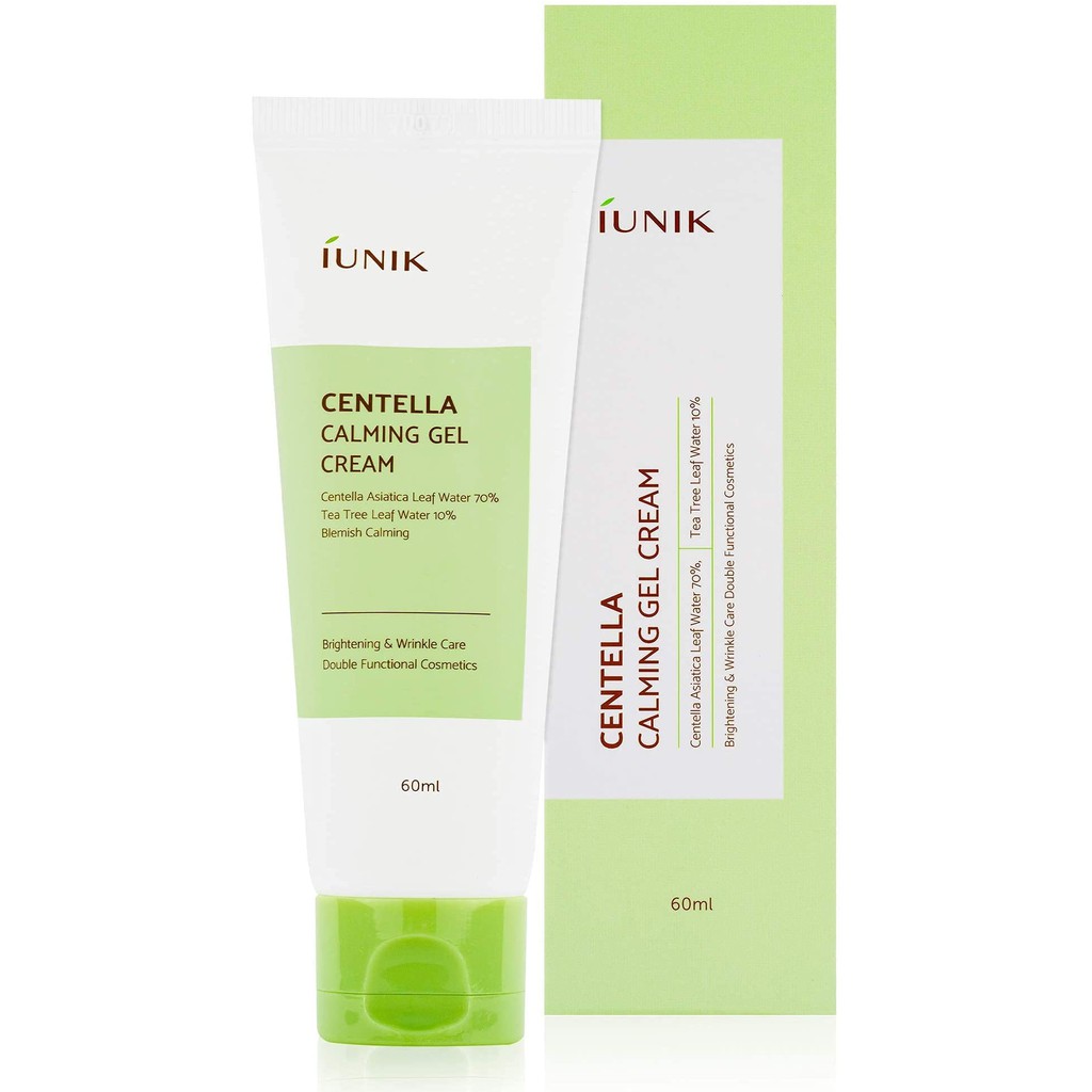 1066340839. iUNIK Centella Calming Gel Cream is a refreshing and moisturizing oil-free cream that makes the skin clearer and more vibrant. Enriched with 72% centella leaf water and 10% tea tree leaf water, this gel cream soothes and clarifies skin, leaving it refreshed and resilient. Other key ingredients include bergamot fruit oil, broccoli.